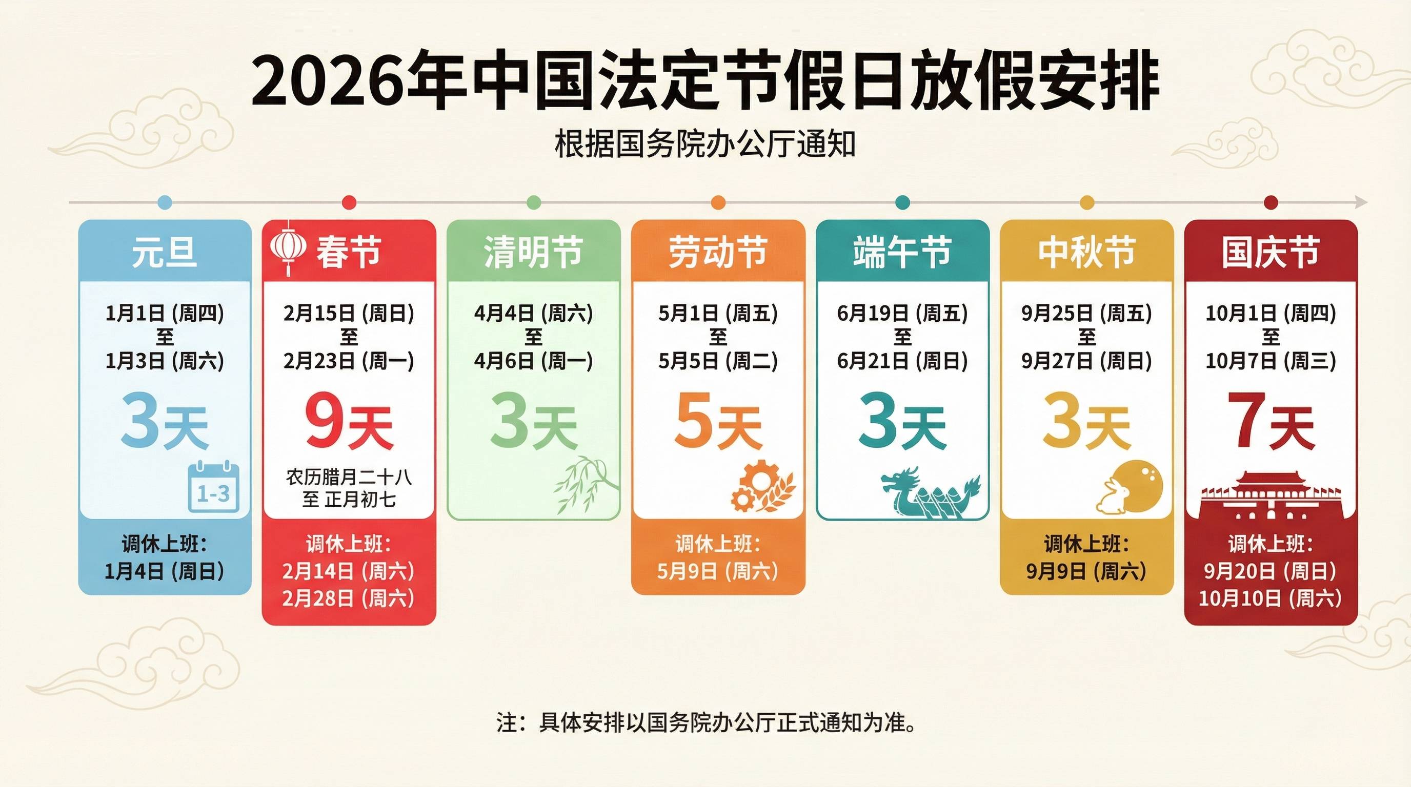 ▲提示词:生成一张 2026 年中国放假安排的信息图,全部使用中文,4K画质,16:9