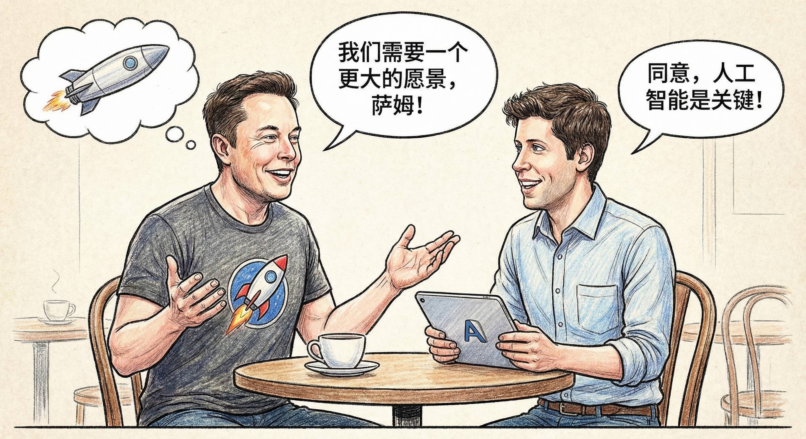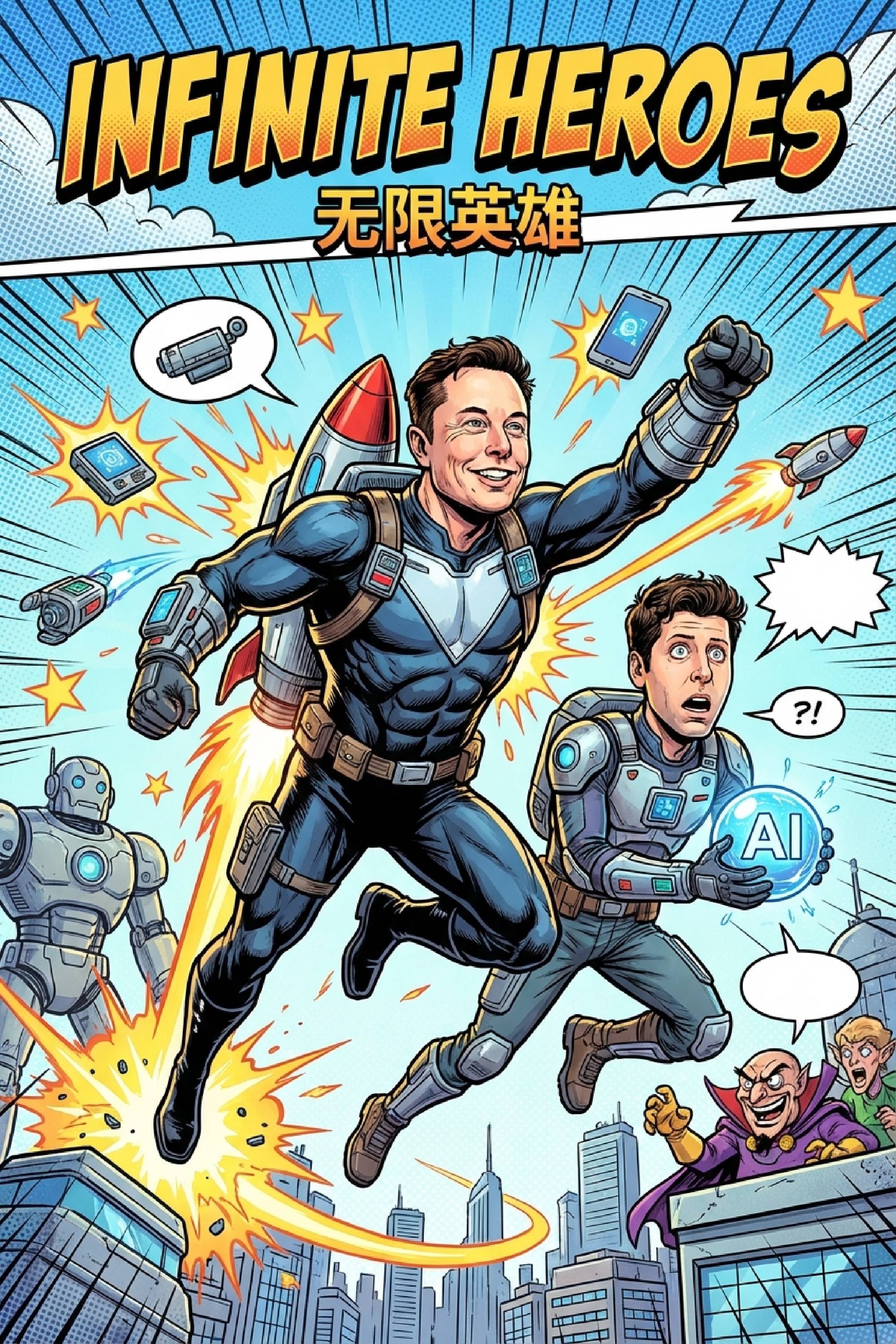 ▲ 提示词:生成几张以 Elon Musk 和 Sam Altman 的生活为主角的真人漫画图片,全部用中文