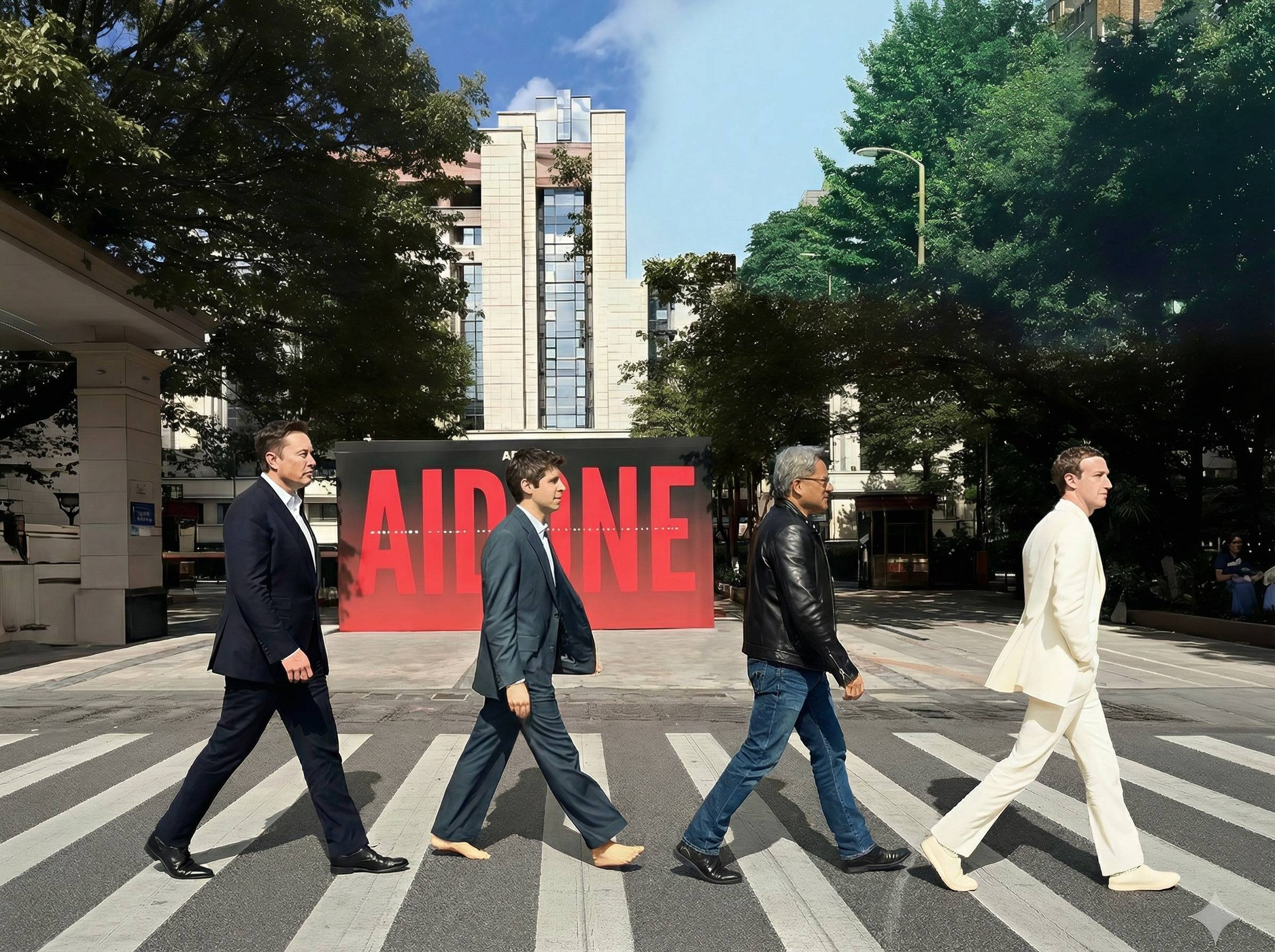 最后,小彩蛋一个,The Beatles 这张经典的专辑封面照片,奥特曼、马斯克、老黄和小扎都来我们未来社「拍摄」了同款,这周末的 APPSO AIDONE 活动,你确定不来看看吗?
