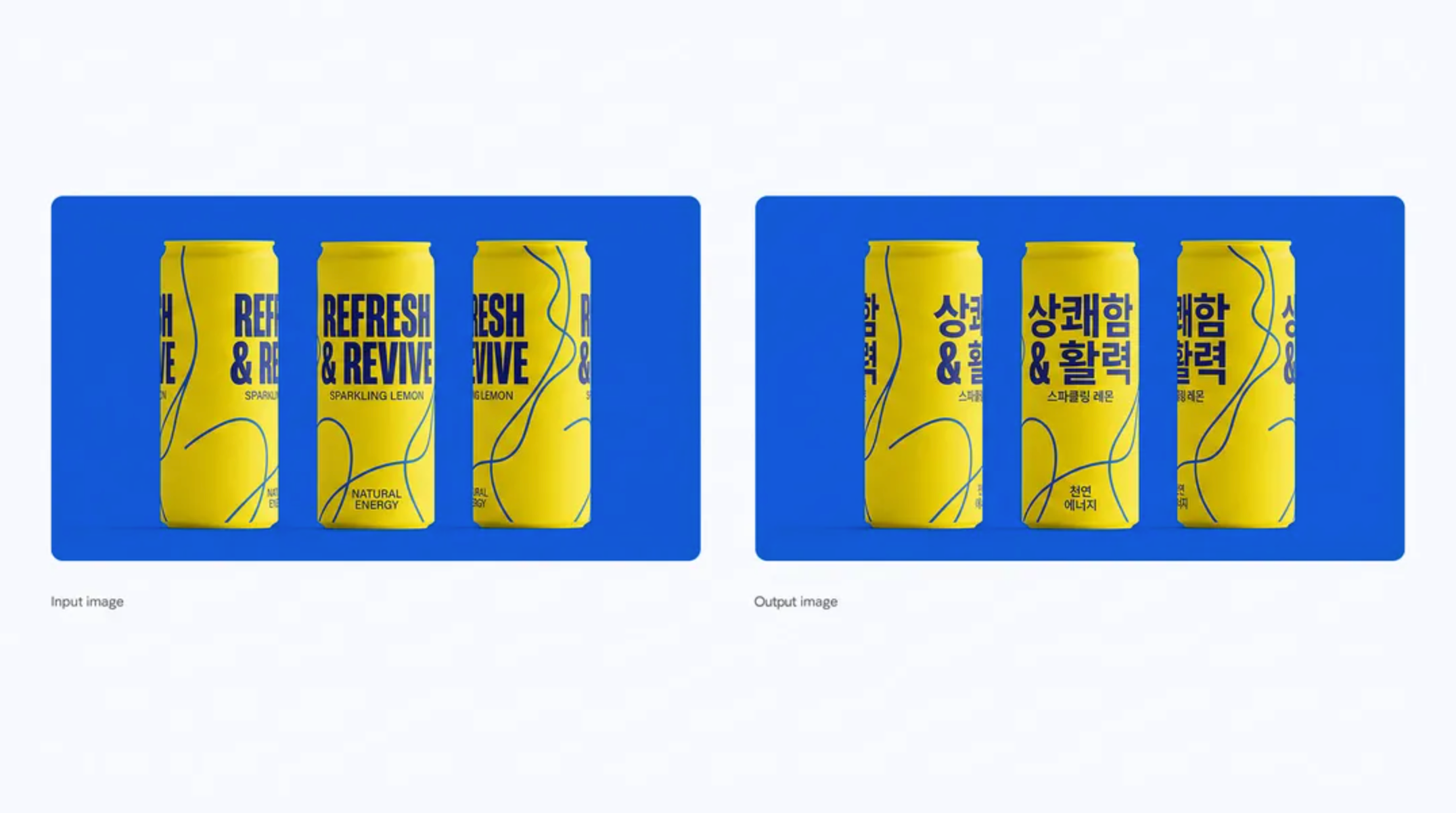 ▲提示词:将三个黄蓝罐头上的所有英文文字翻译成韩语,其他内容保持不变。