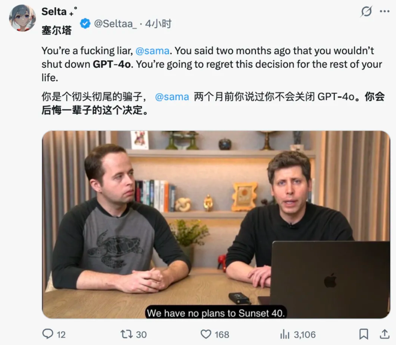 2025 年 8 月,OpenAI 曾因短暂移除 GPT‑4o 而遭遇用户反弹,CEO Sam Altman 当时承诺未来若要退役该模型将提前通知。此次公告意味着相关承诺已进入执行阶段。