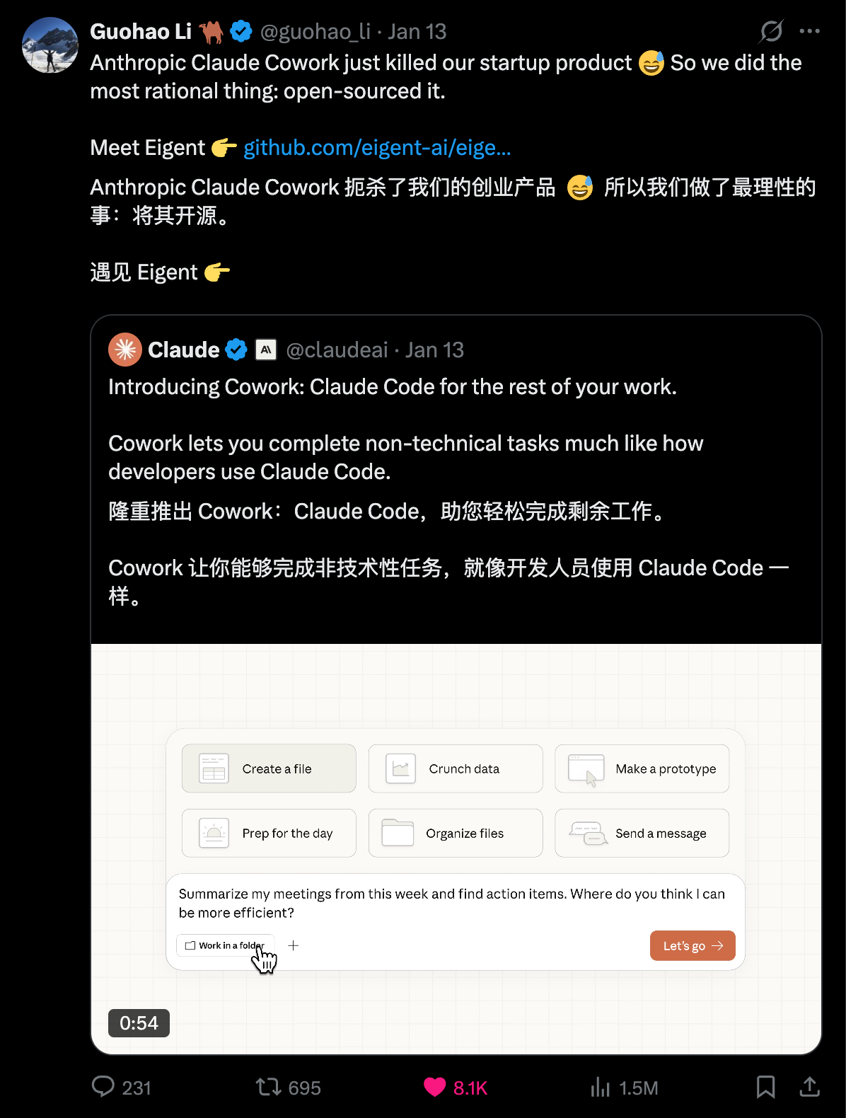 近日,追觅科技 CEO 俞浩在微博发文,针对此前朋友圈「百万亿美金的公司生态」言论进行了回应。