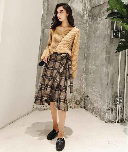 12 不规则荷叶边裹裙是年度最火单品之一,轻松围裹自由舒适,打造大长腿气质优雅少女心也融合在其中,数不尽的优点让人爱不释手,英伦格纹更添一份帅气知性,搭基本款上衣配一身同色系魅力无敌。