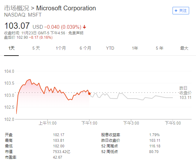 ▲ 微软公司市场概况
