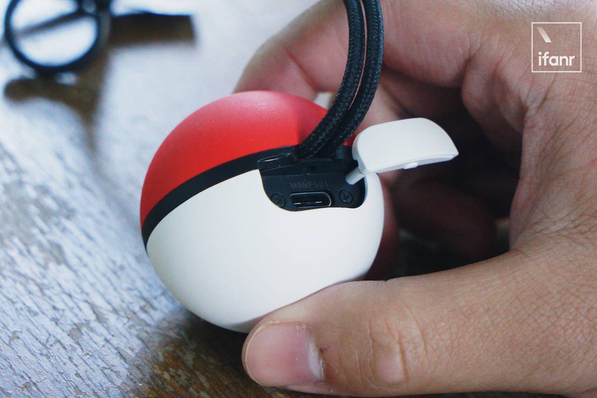 精灵球背部有一个 USB-C 充电口,掀开保护盖就可以进行充电: