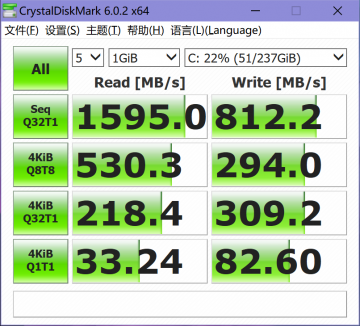 PC Mark 10 的测试主要是看电脑的综合性能,这次在 Surface Pro 6 的测试基准测试得分是 3032 分,应付办公需求问题不大。接下来再看看 CrysdalDiskMark 测出的 SSD 速度结果: