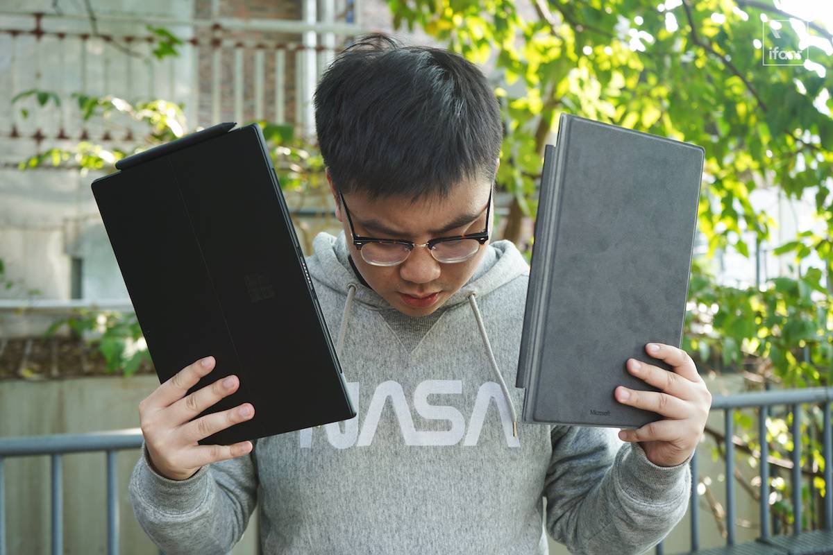 于是,在写这篇评测前,我一直在想要不要将 Surface Pro 和 Surface Laptop 一起对比,但后来我还是放弃这个想法。虽说这两款产品在定位上同属笔记本电脑的范畴(毕竟都能折起来),但本质上,这两款 Surface 的差异还是比较明显,其所对标的产品种类也有着大不同。