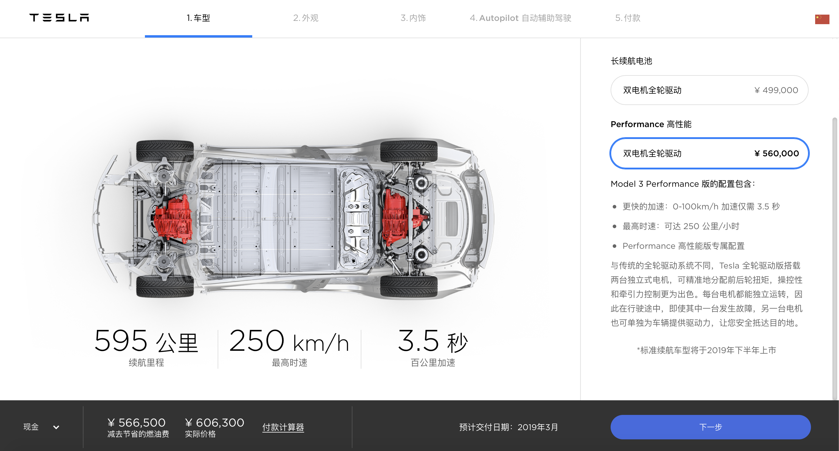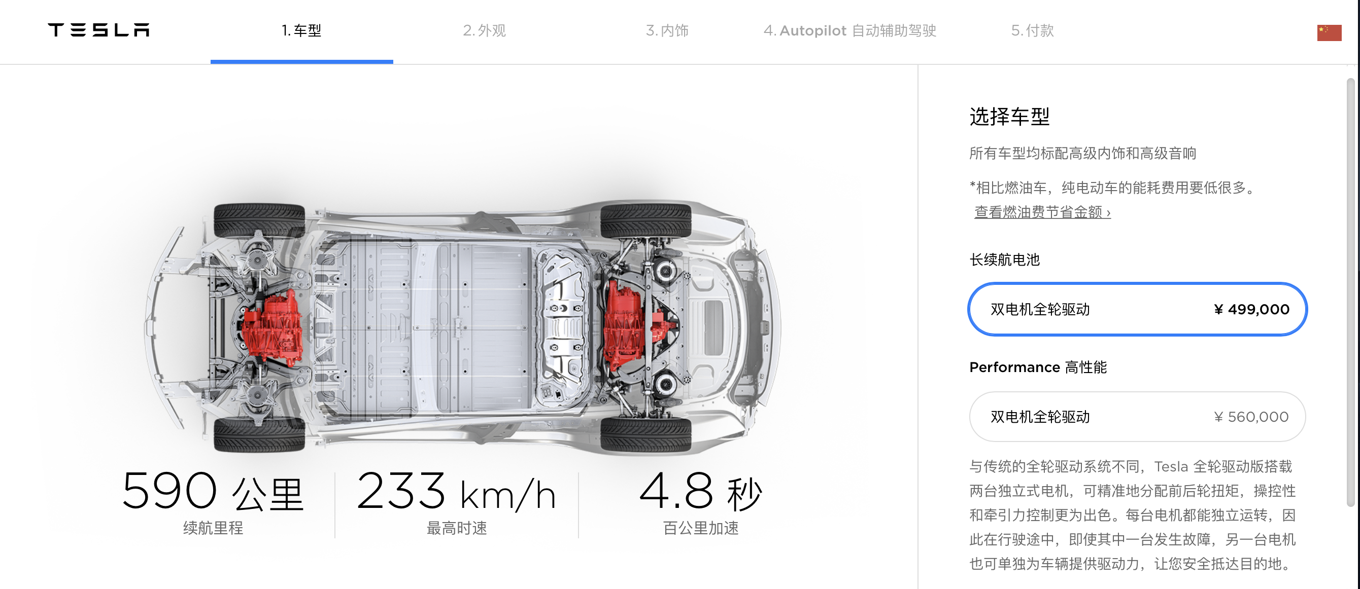 目前就长续航版和 Performance 高性能版,裸车售价分别为 49.9 万和 56 万。