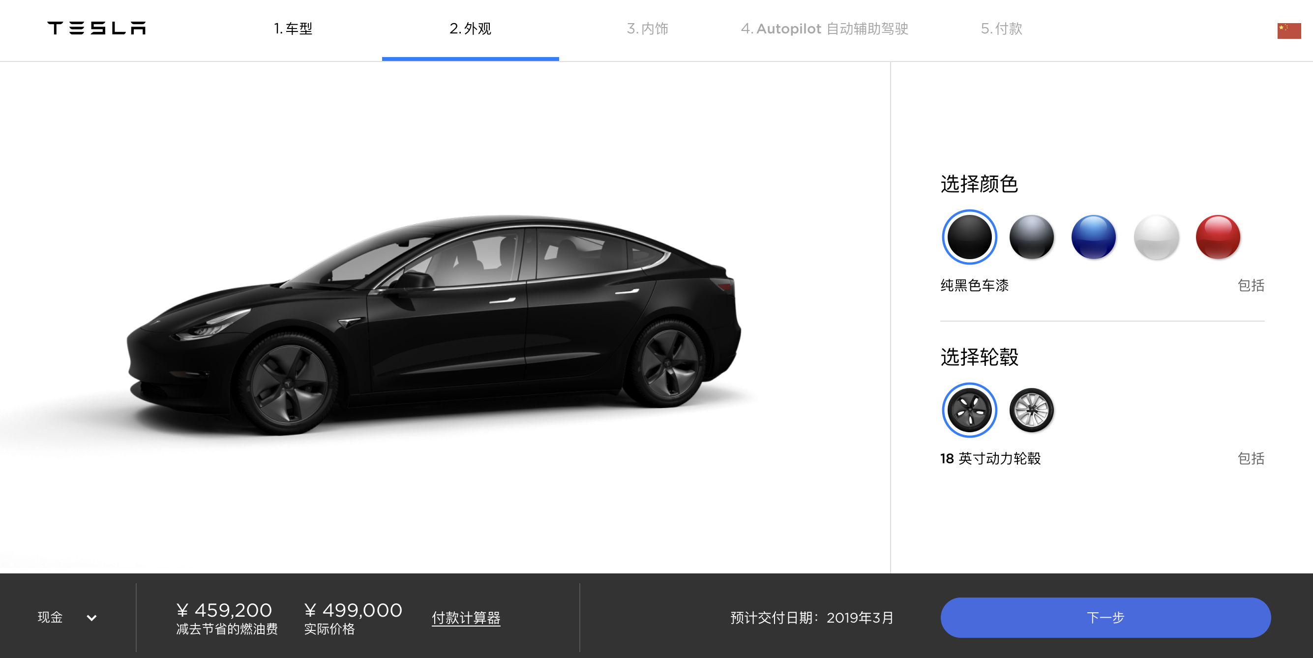 前几日,刚有人在国内路上拍到了临牌 Model 3 的路试车,今天特斯拉就在官网公布了 Model 3 的选配方案,现在打钱,三月交车。
