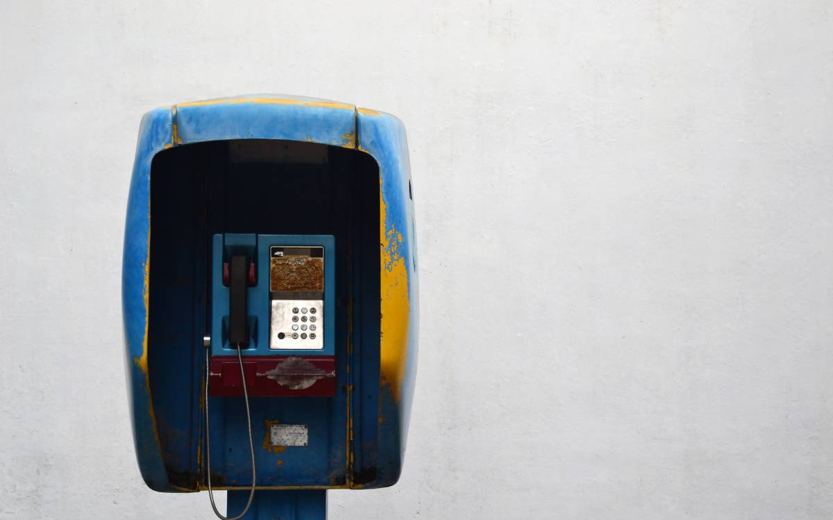 而我留意到,他所站位置的边上,就挂着一台锈迹斑驳的公共电话。