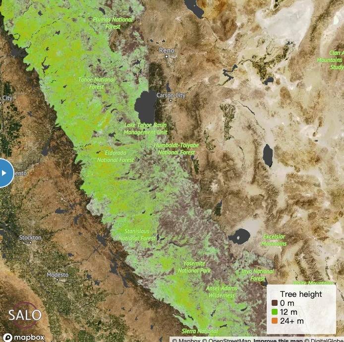 据大自然保护协会的森林生态和消防主管 Edward Smith 介绍,他们正在加利福尼亚州和内华达州交界的山脉上测试一项人工智能计划,旨在用算法评估森林树木的稀疏程度是否足以防止山火蔓延。