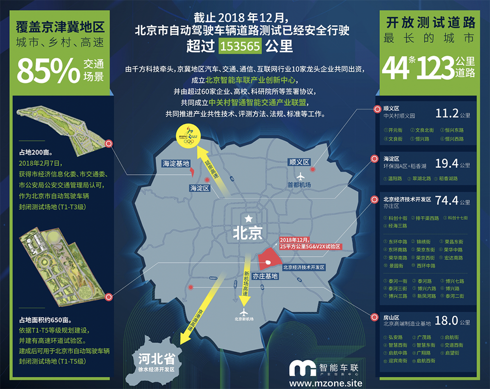 2018 年 2 月以来,北京市也累计开放了 4 个区域的 44 条道路,共计 123 公里,覆盖了多样化的城市交通场景。