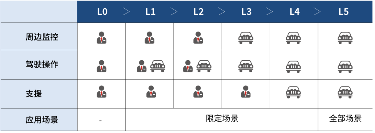 在每类城市交通情景下,从认知与交通法规遵守能力、执行能力、应急处置能力、综合驾驶能力、网联驾驶能力五个维度对自动驾驶能力进行分级。