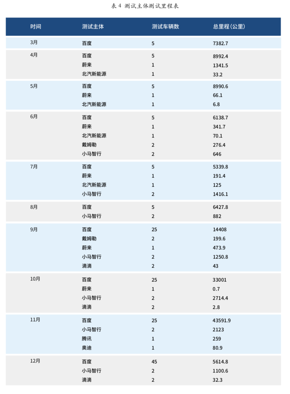 不过有趣的是,百度一家就占了 45 台,安全测试里程达到了约 13.9888 万公里,剩下的七家公司总计完成了 1.3677 万公里的测试。