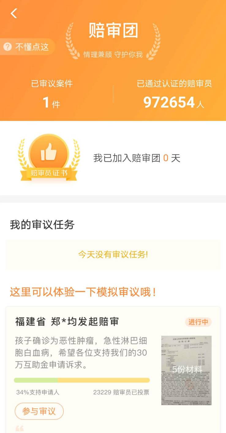 以上就是相互宝的简要背景,接下来详细聊聊这款产品上的赔审团机制和首例争议案件赔审。
