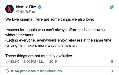 Netflix 也在 Twitter 上回应了斯皮尔伯格的评论: