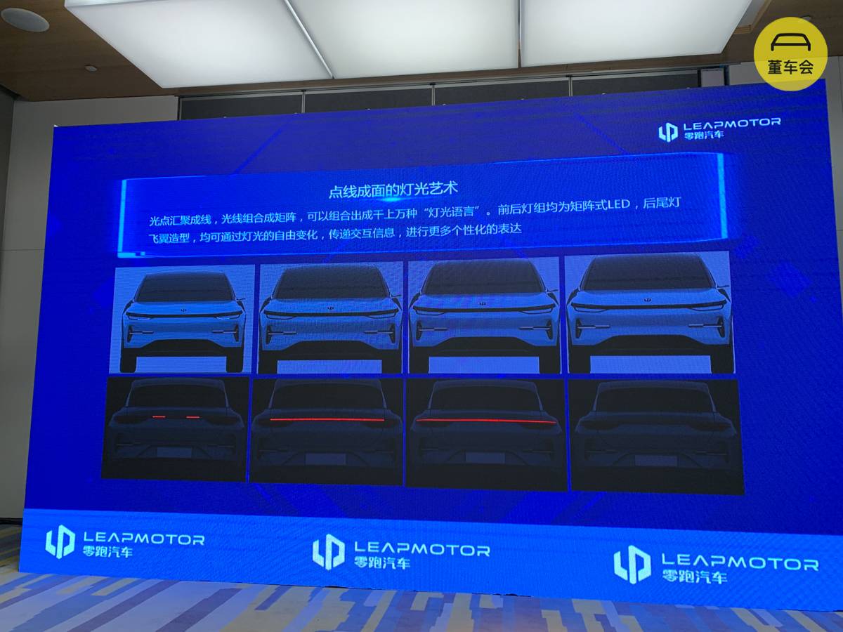 对了,零跑还强调了一下这台车的灯光设计,前后的矩阵式 LED 能够通过千变万化的灯光对外进行交互,官方称之为「点线面的灯光艺术」。