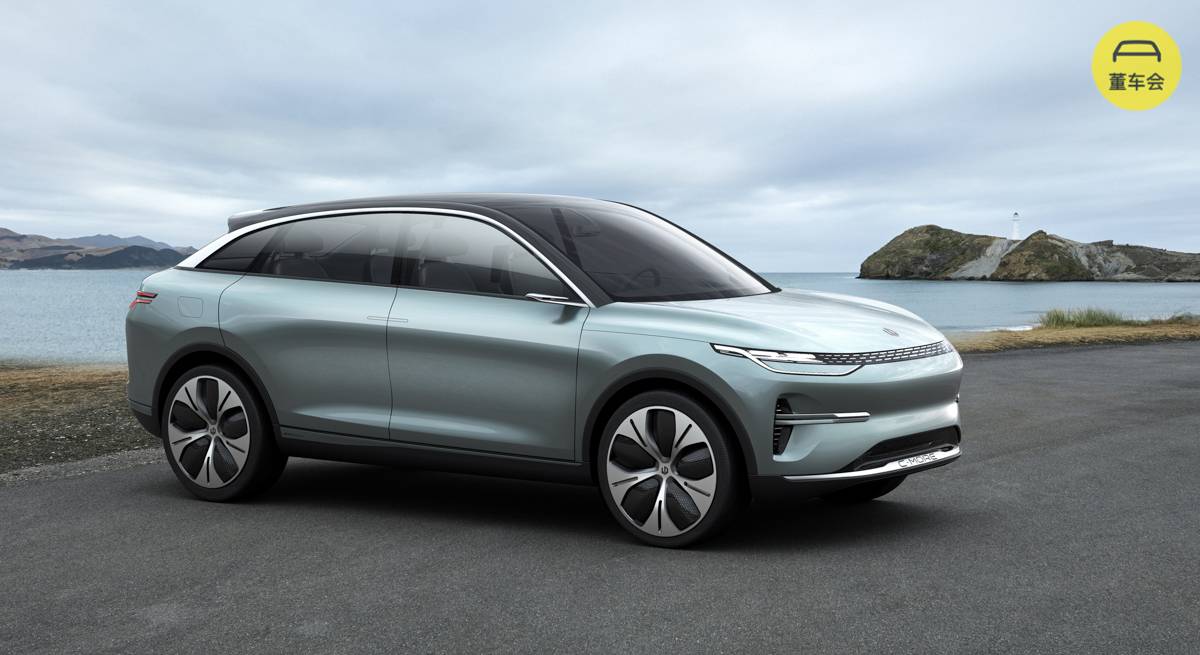 还别说,车头造型还真有点法拉第未来的意思,但车顶弧度更大,整体造型不像 FF91 那般扁平修长。只能说一眼看上去和 FF91 以及拜腾属于同类型的设计取向。