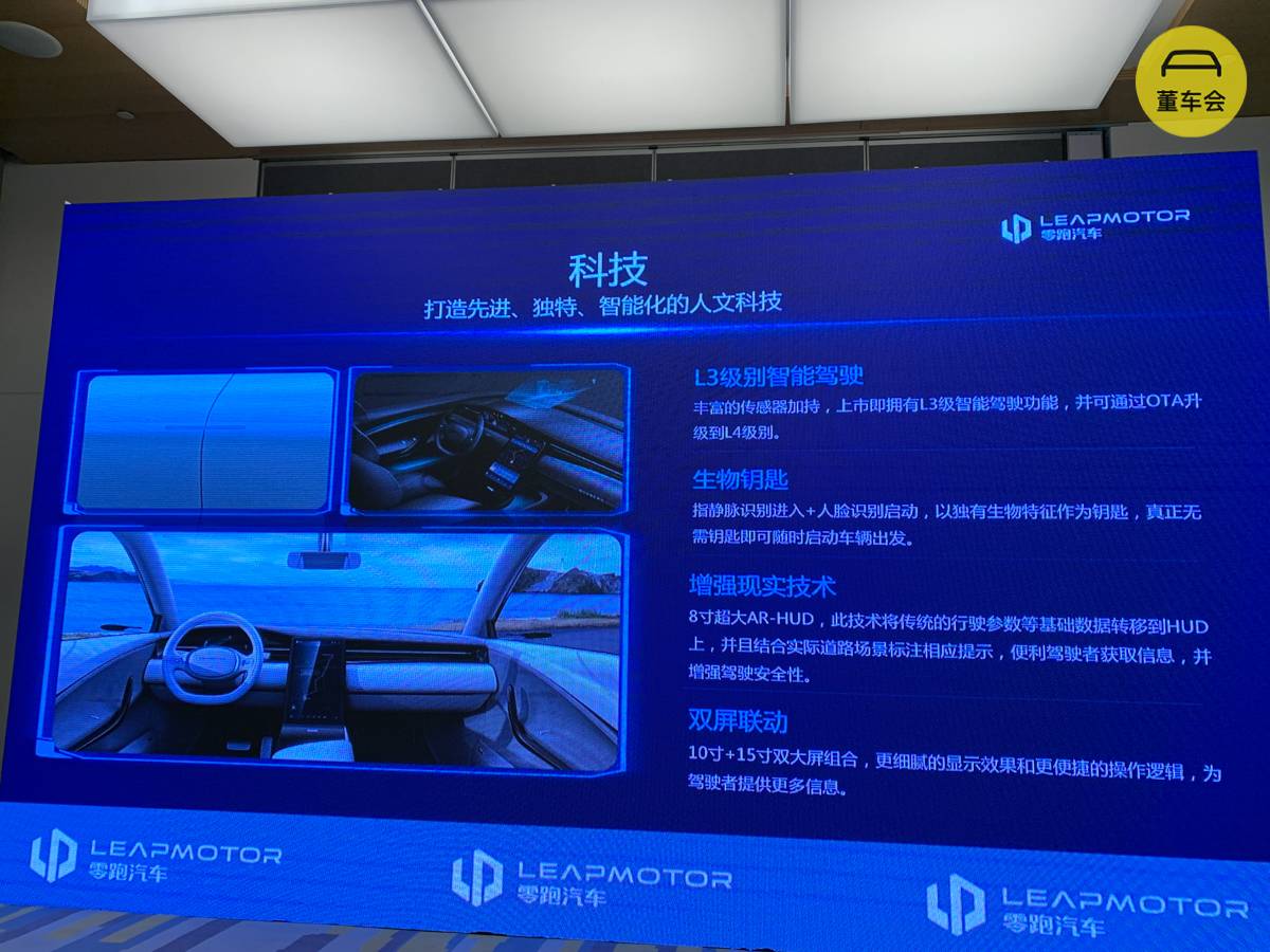 比如从零跑 S01 开始就配备的「指静脉识别解锁」+「人脸识别启动」、首次应用的 AR-HUD。要知道 AR-HUD 的量产应用是很困难的,例如怎么控制挡风玻璃的成本,怎么保证光学投影的合理性避免驾驶员使用起来不犯晕等等。