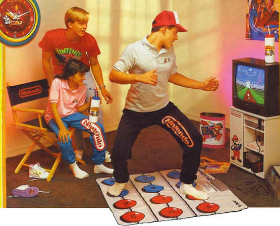 早在 1987 年,任天堂就和万代一起,在美国推出了一个名为 Power pad 的垫子,上面配有各种压力传感器,和不同的 NES 游戏一起使用。
