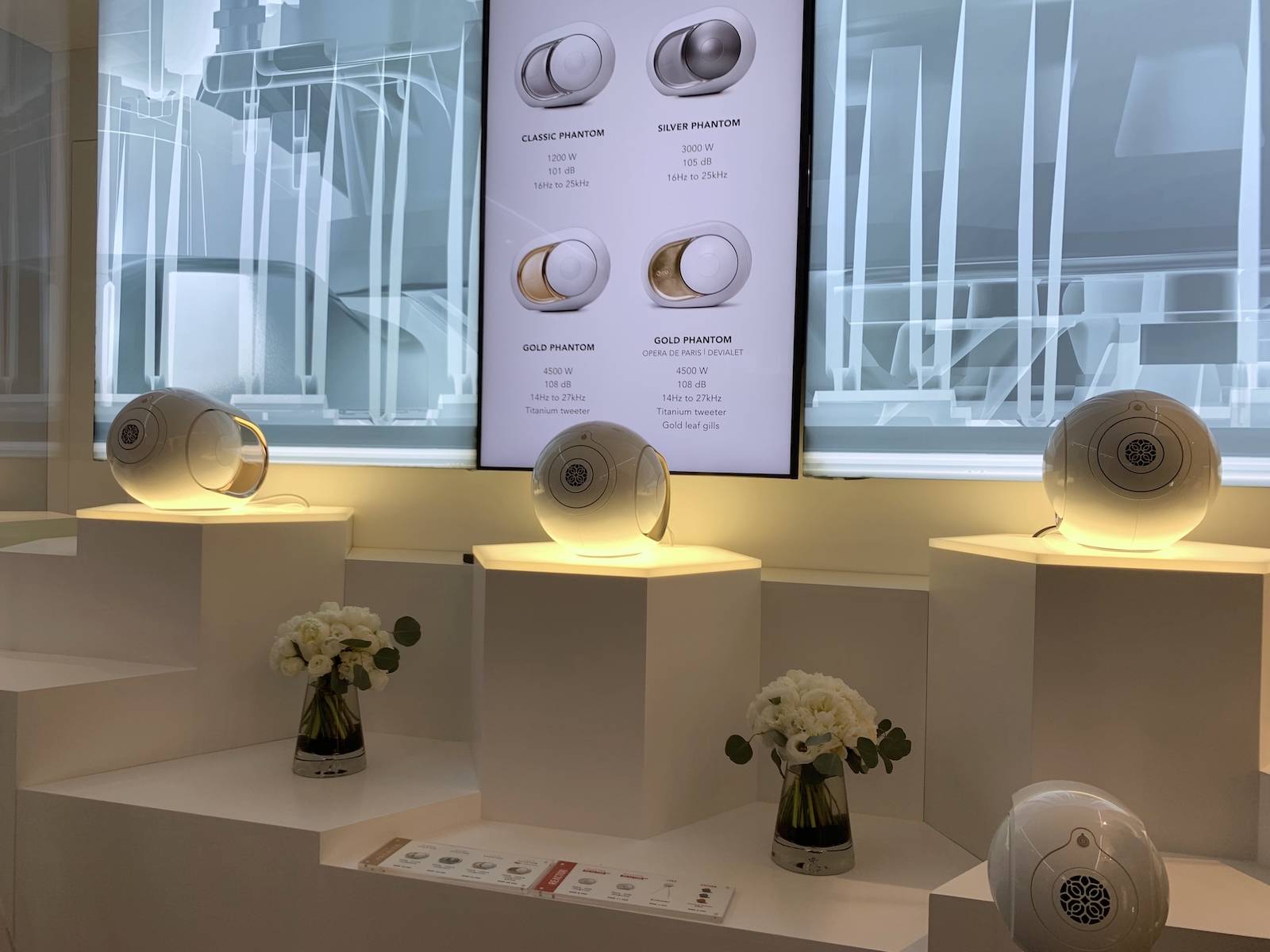 这次在概念店内也看到了大大小小不同的帝瓦雷无线音箱产品,一开始我还以为都是一样的,略一留神才发现其实从最普通的「水煮蛋」(自己起的名)版本到更高端的「银蛋」、「金蛋」都摆了出来。
