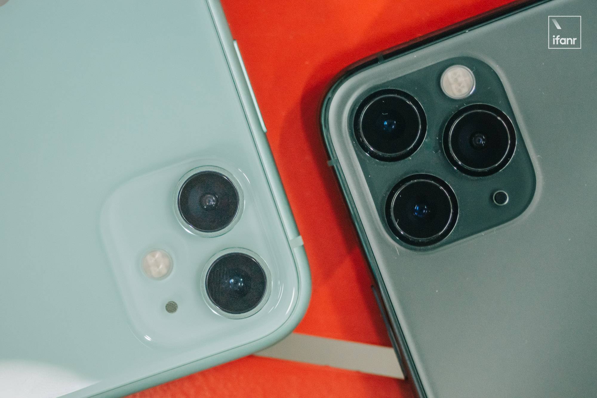 iPhone 11 拥有一颗 1200 万像素、26mm 等效焦段的广角镜头,和一颗 1200 万像素、13mm 等效焦段的超广角镜头;iPhone 11 Pro 双机则在此基础上加入了一颗 1200 万像素、52mm 等效焦段的长焦镜头。