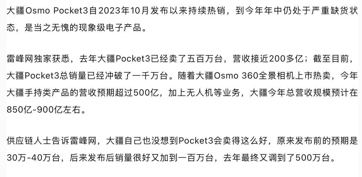 截至 2025 年 9 月,Osmo Pocket 3 总销量突破一千万台,达到这个夸张的数字,Pocket 3 只用了两年。